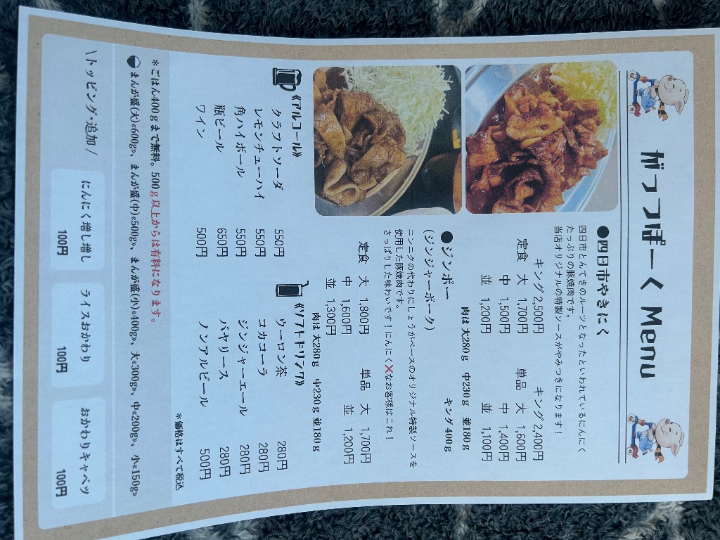 ヤミツキになるタレを絡ませた豚肉、キャベツ、ご飯の定食を思う存分お試しください。四日市ソウルフード的な存在になれるように日々、営業しております。駐車場は店舗前に2台とめれます。満車の場合は近隣の駐車場へお止めくださいませ。
