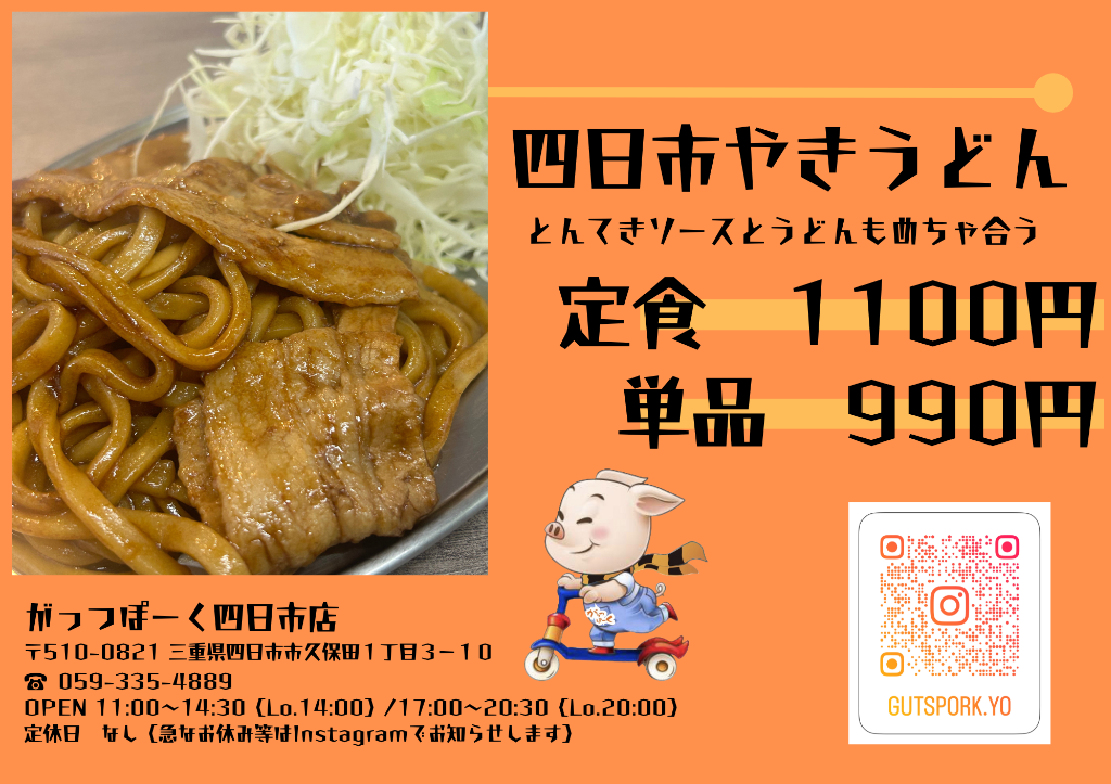 ⭕️四日市焼きうどん定食 税込1100円 単品税込990円