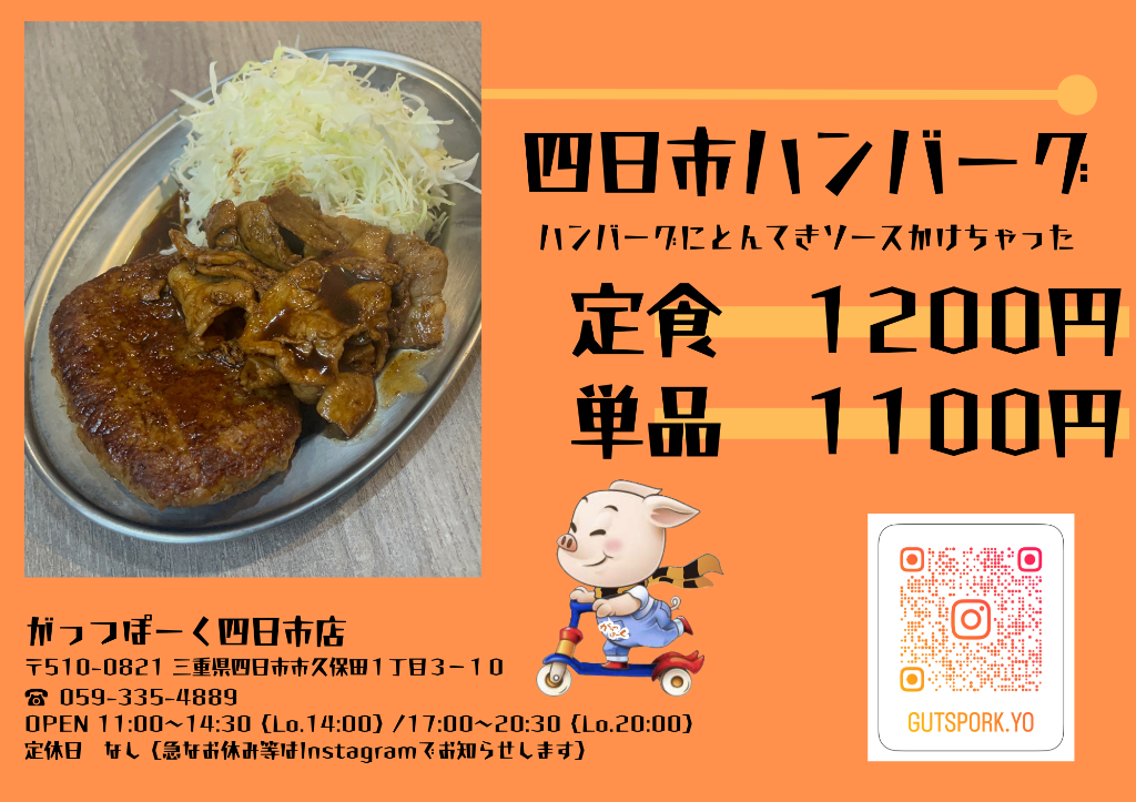 ⭕️四日市ハンバーグ&やきにく定食 税込1200円 単品1100円