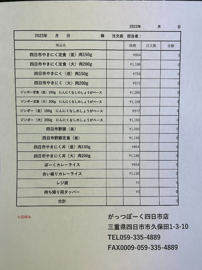 おはようございます。先週もたくさんのご来店ありがとうございました。感謝感謝申し上げます。今週も良い一週間をお過ごしくださいませ。がっつぽーくではいよいよ今週は新メニューを登場させる予定をしております。テイクアウトもいよいよ今週のどこかのタイミングでスタートさせていただきます。夜は居酒屋メニュー、ランチタイムはおすすめのジンポー、やきそば定食など、お客様のお好みの気分でご賞味くださいませ。